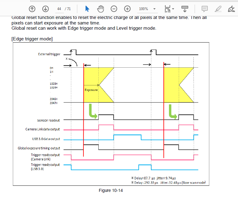 Global exposure timing output是所有像素同事曝光时相机给出的外触发信号,详见说明书instruction manual v1.5第41页(附链接)。
