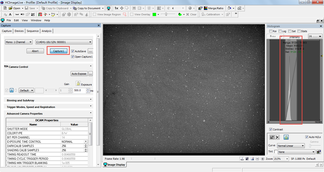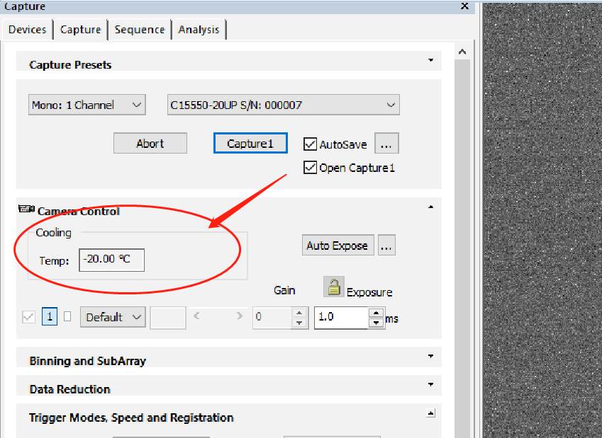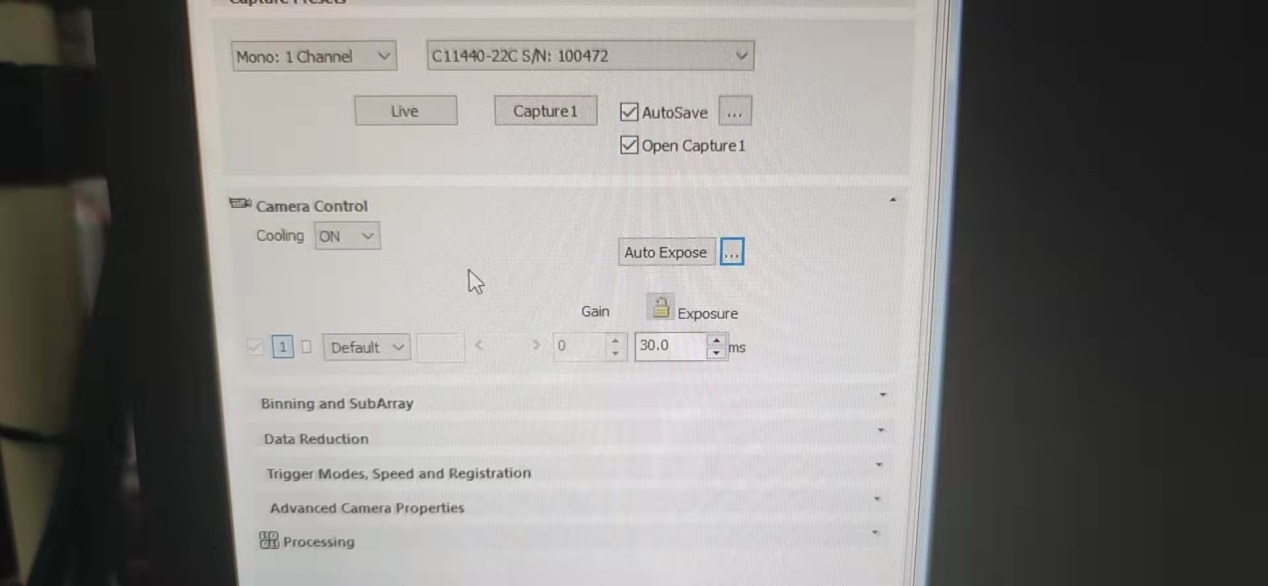 背景扣除按照以下步骤,设置好需要的曝光时间,盖上相机盖子,点击Capture。