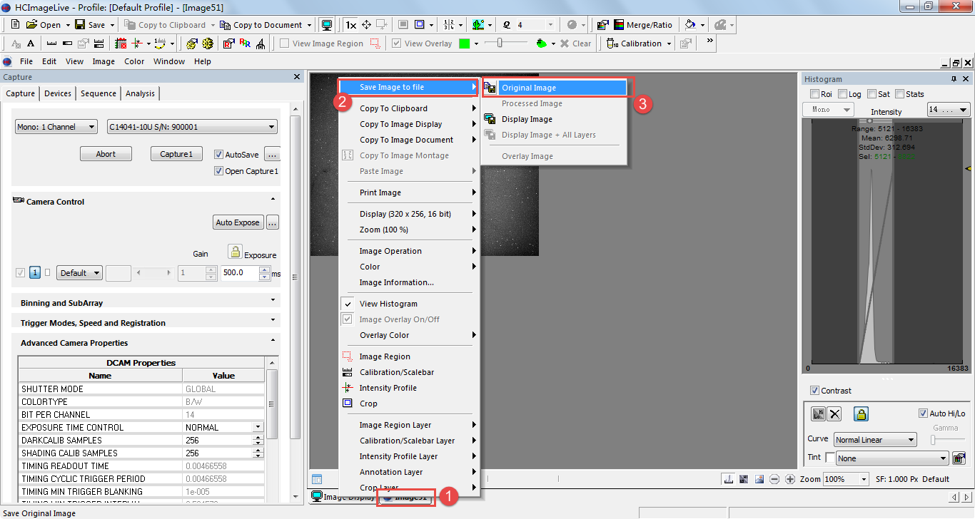 右键单击拍摄的图片,选择Save Image to File- Original Image, 将背景图片保存。