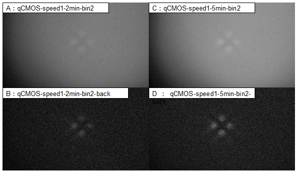 对于高帧速下的成像耗时,qCMOS相机比EMCCD有明显优势,qCMOS相机可以在10 ms曝光时间下,对量子点进行高速寻址而EMCCD无法做到,满足了客户对高帧速采集单光子需求。总的来说qCMOS相机有分辨率、帧率兼信噪比高的特性,产品具有较高的参数指标,在短曝光时间时相比于EMCCD有较明显优势。
