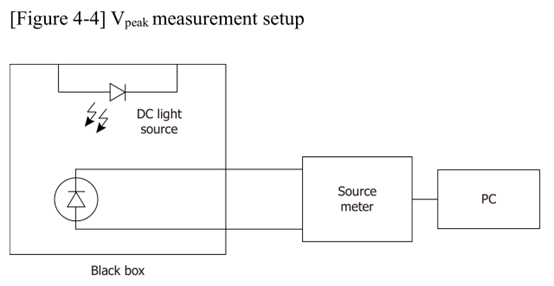 (5)接下来对I-V数据进行分析,获得Vpeak。我们尽量模拟日本制造部实验室的测试条件,如在有光的条件下,温度约为26 ℃,从而同日本制造部实验室出厂的参数对比。