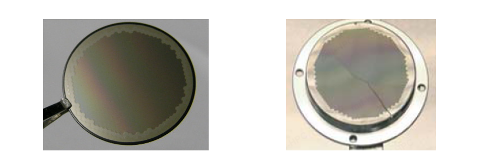 1. 使用前:一般在使用前,常见的MCP损坏的原因主要是由于外力的冲击或者是剧烈的碰撞,导致板材的破损,或者是裂开。其中组件由于已经将MCP和法兰安装在一起,所以不太容易损坏,除非是直接用外力冲击MCP的部位;MCP裸片由于没有法兰的保护,如果客户需要自己安装或者拆卸,需要借助一定的工具,均匀的抓取MCP的周围,如果受力不均匀或者是力过大,均会导致MCP组件的裂开,所以需要格外小心。