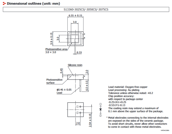 ② 滨松手册通常都有一个比较细节的阳极标识或①脚标识,有的型号可能需要仔细观察。