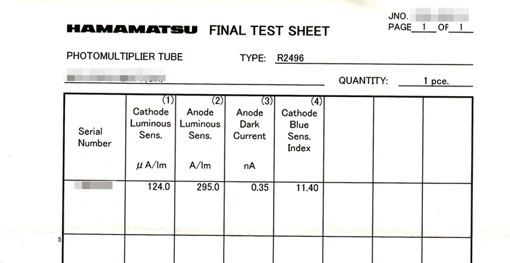 需要特别说明的是,光电倍增管的批间差是在我们严格的出厂标准范围内的,我们会对每一只光电倍增管进行出厂检测,确保其灵敏度、暗电流等核心参数均满足出厂要求,能够正常工作,同时我们也会将出厂的检测报告单随货发给客户,客户可以随时检查相关的出厂数据。