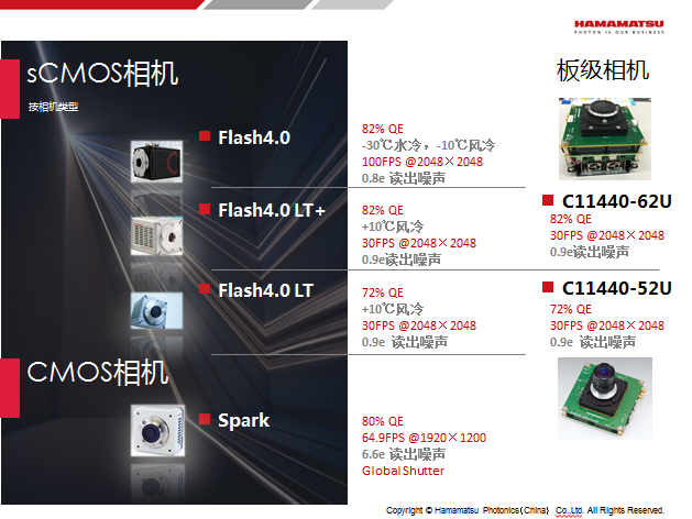 此外,还有可供选择的轻量级产品,Flash4.0 LT +/ LT,在帧速上(或是量子效率上)比Flash4.0稍低,但表现同样优秀,具有较高的性价比。