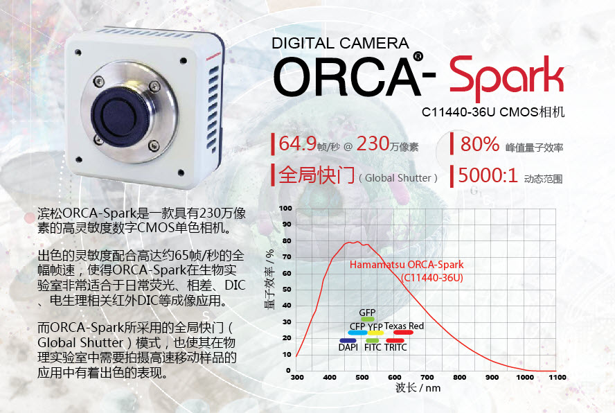 滨松对于可见光波段,性能最好的相机就是以ORCA Flash4.0为代表的科学级CMOS(sCMOS)系列相机,它们具有高速高灵敏度的特点,使这类相机在超分辨、天文、量子光学等领域发挥了很大的优势。