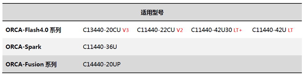 适用相机类型:Flash4.0 LT/LT+ 或ORCA-Spark with USB3.0 连接